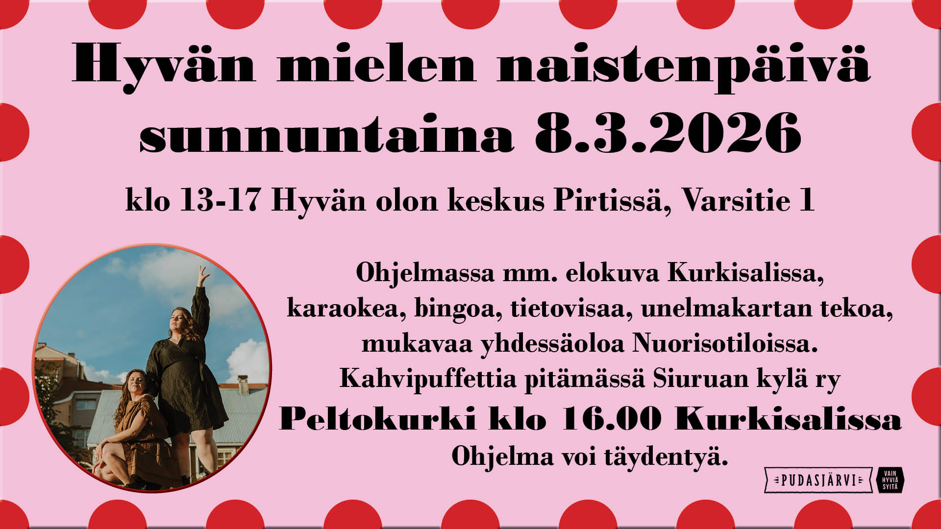 Elämän Wirtaamo, Katrin Kulttuurikahvila Kauppatie 3, PudasjärviKatrin Kulttuurikahvilassa yhdistetään liikunta ja kahvilakulttuuri. Kevyt istuen ja seisten toteutettava liikuntatuokio (30min) palkitaan pullakahvilla ja palautekeskustelulla. Teemat ovat: 18.2 perusjumppa; 25.2 chiBall; 4.3 pullopunttijumppa; 11.3 tuolitanssit ja 18.3 venytellen. […]