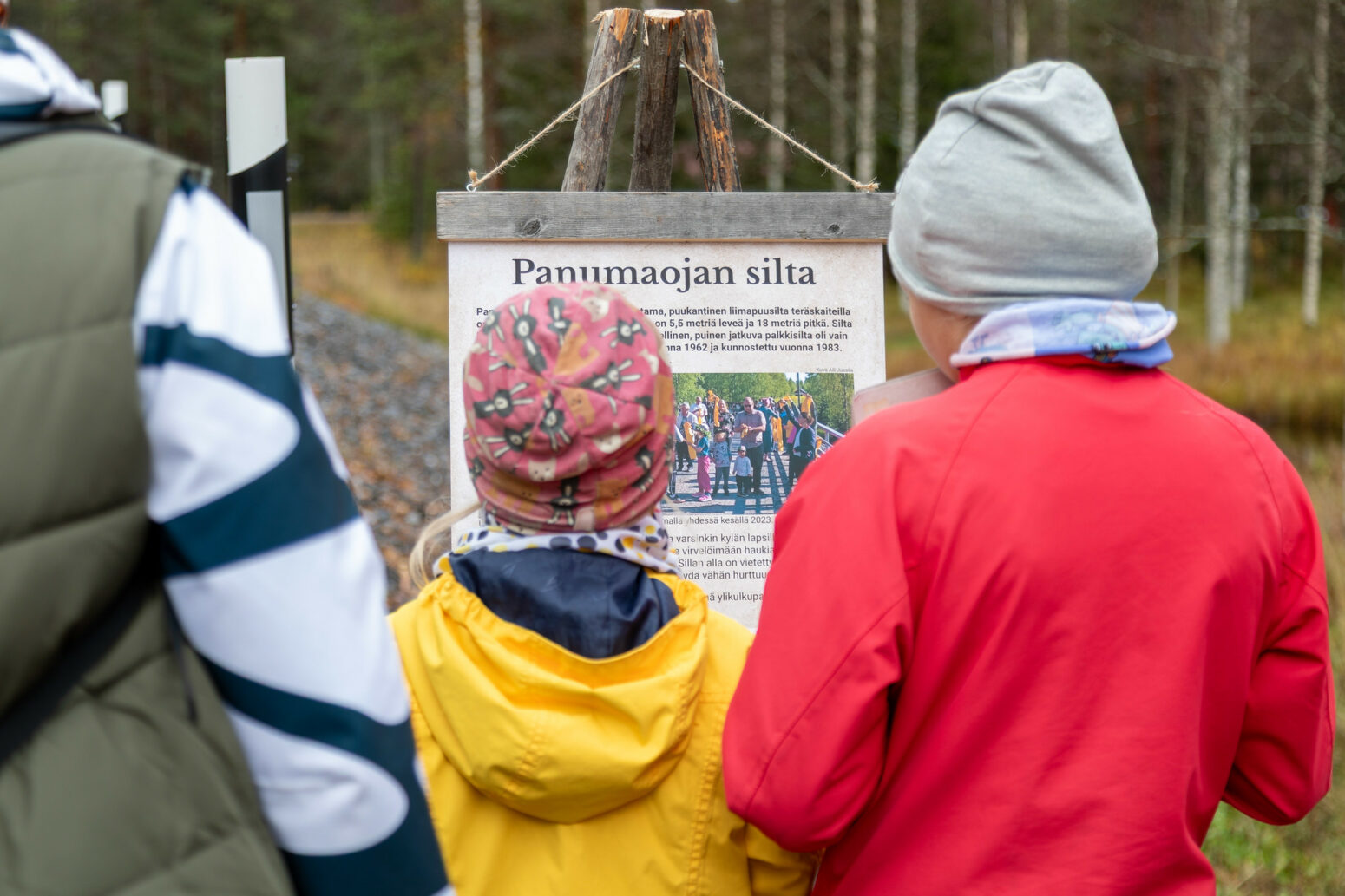 Panuman kylä ry:n puheenjohtaja Jenni Riepula toimi oppaana pienelle seurueellemme, jonka nuorimmainen hyppeli iloisena kaikki rapakot läpi. Osan matkaa kuljimme myös entisen opaskoiran kanssa, joka oli päässyt viettämään eläkepäiviään Panumalle. Sen häntä vipatti siihen malliin, että se vaikutti selkeästi tyytyväiseltä elämäänsä. Sama tyytyväisyys paistoi varmasti kaikkien muidenkin kasvoilta.