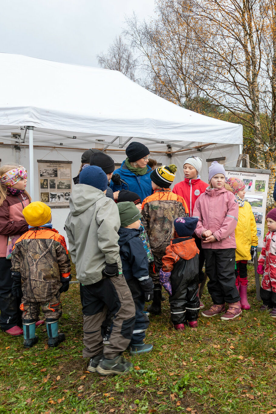 Panuman palo ja kylän historia oli tarinallistettu kauniisiin infotauluihin, joihin sai tutustua näyttelyteltassa ja kulttuuripolun varrelta löytyvissä kohteissa. Kuumaa kahvia ja leipäjuustoa narskutellessa se olikin oikein mukavaa ja mielenkiintoista, vaikka kolea syysviima änkeytyikin välillä kauluksesta sisään.